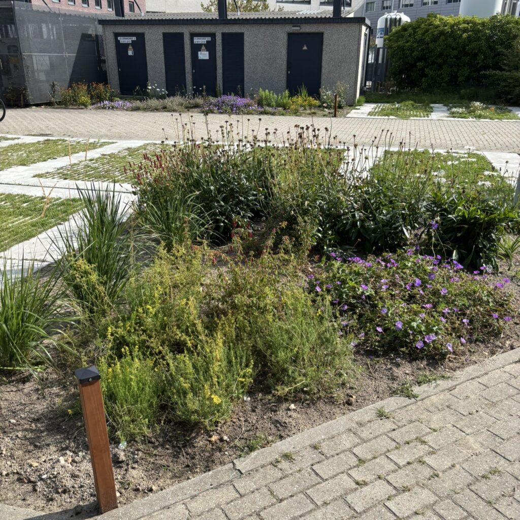 Bij de Joan Muyskenweg werd na een ecologisch onderzoek het terrein vergroend met inheemse beplanting, 22 plantenbakken en klimplanten langs het hekwerk. Daarnaast werden nestkasten, vleermuiskasten en een huismussentil geplaatst om de biodiversiteit te versterken. “Het zijn soms relatief kleine maatregelen,” zegt Maarten Verzijl, “maar ze hebben een groot effect op de natuur, én op de beleving van onze huurders.”